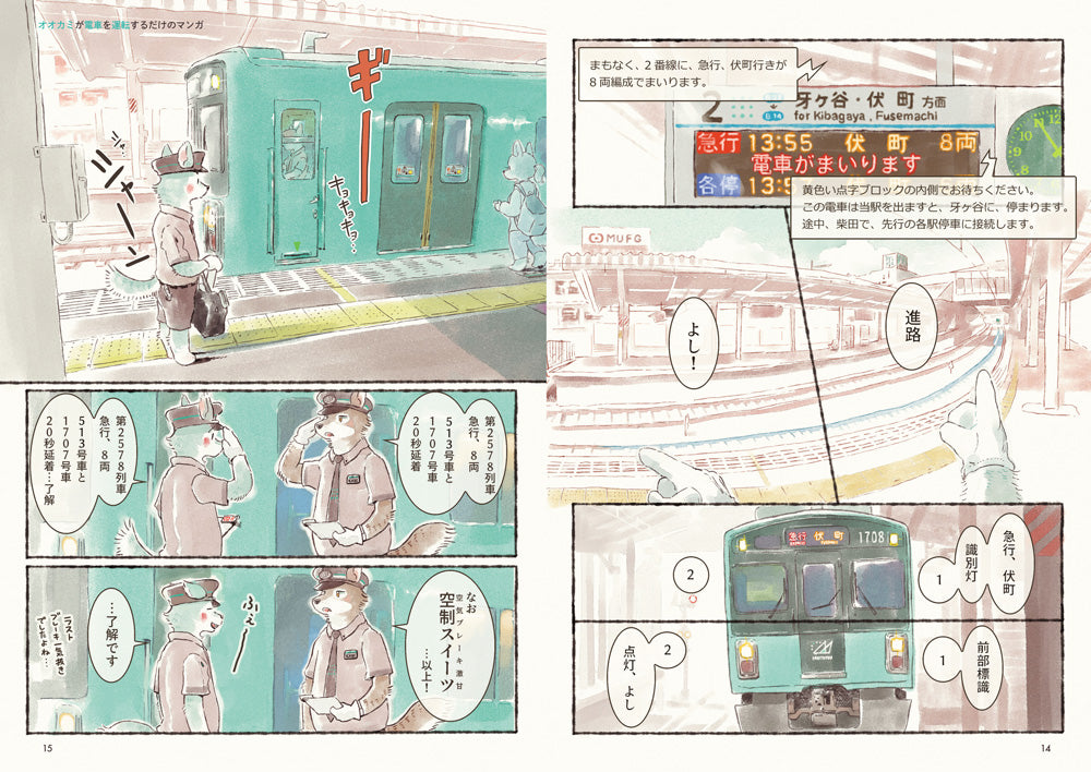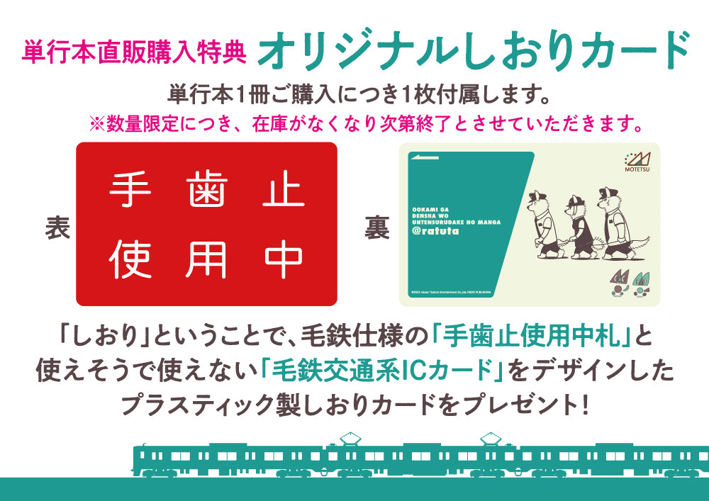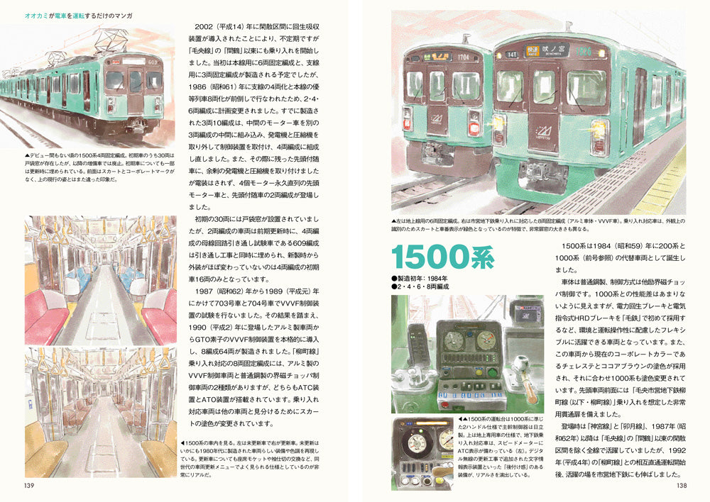 ・A manga about a wolf driving a train ・A manga about a wolf taking a train into and out of a depot ・A manga about a wolf attaching and stopping trains ・A manga about a wolf rambling on about driving a train ・A manga about a wolf driving another company's train ・A manga about the day a wolf decided to become a train driver ・Reference material: Basic settings of the Mao Railway ・Illustrated guide to Mao Railway vehicles