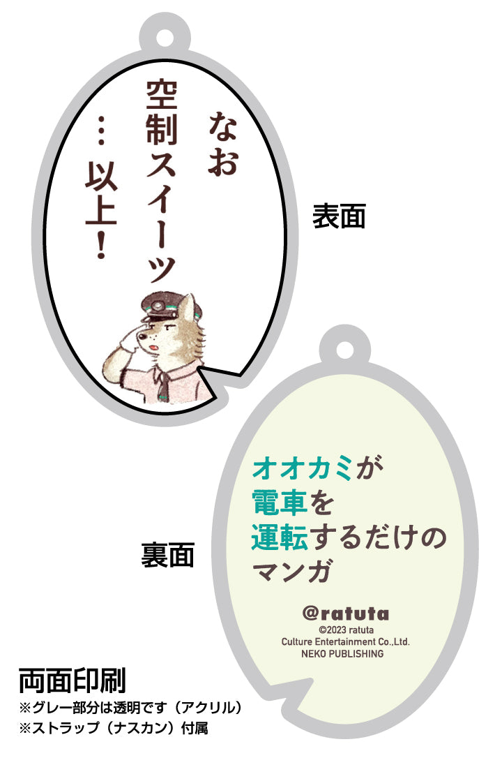 A famous line from "A manga about a wolf driving a train" has been made into a keychain.