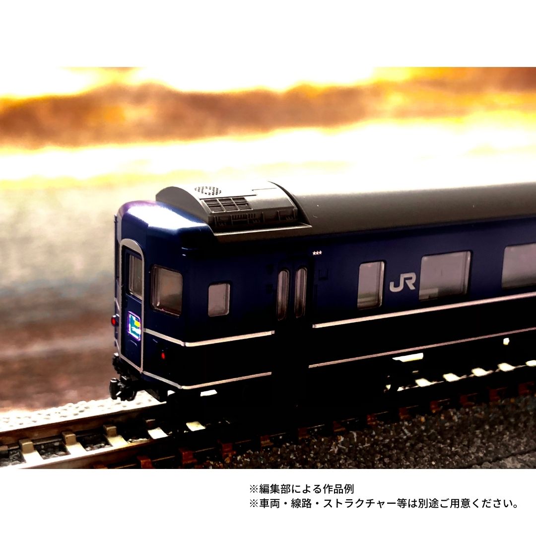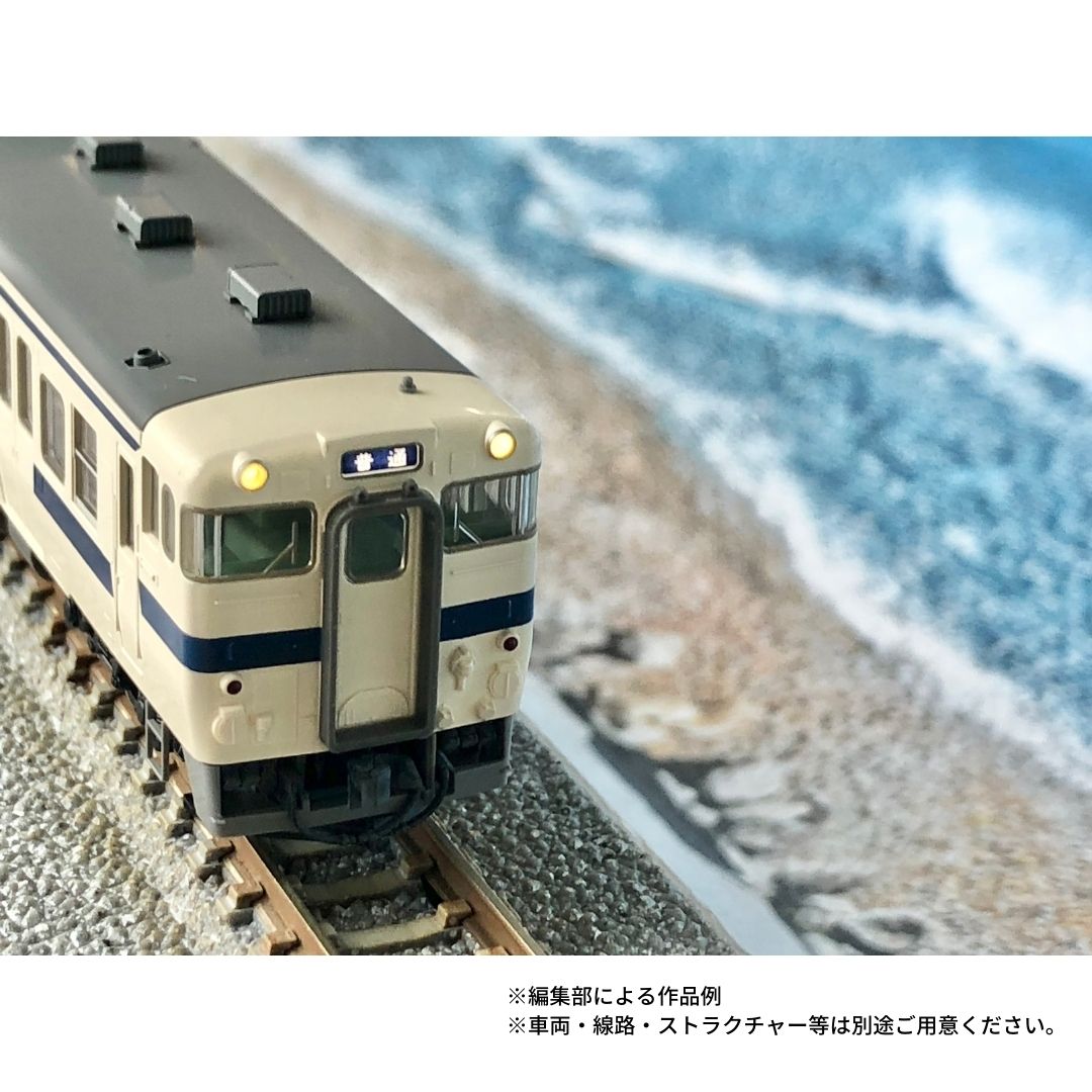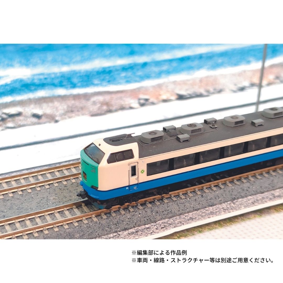 市販の線路とお好みの車両を配置することで、雄大な海辺のシーンが再現できます。