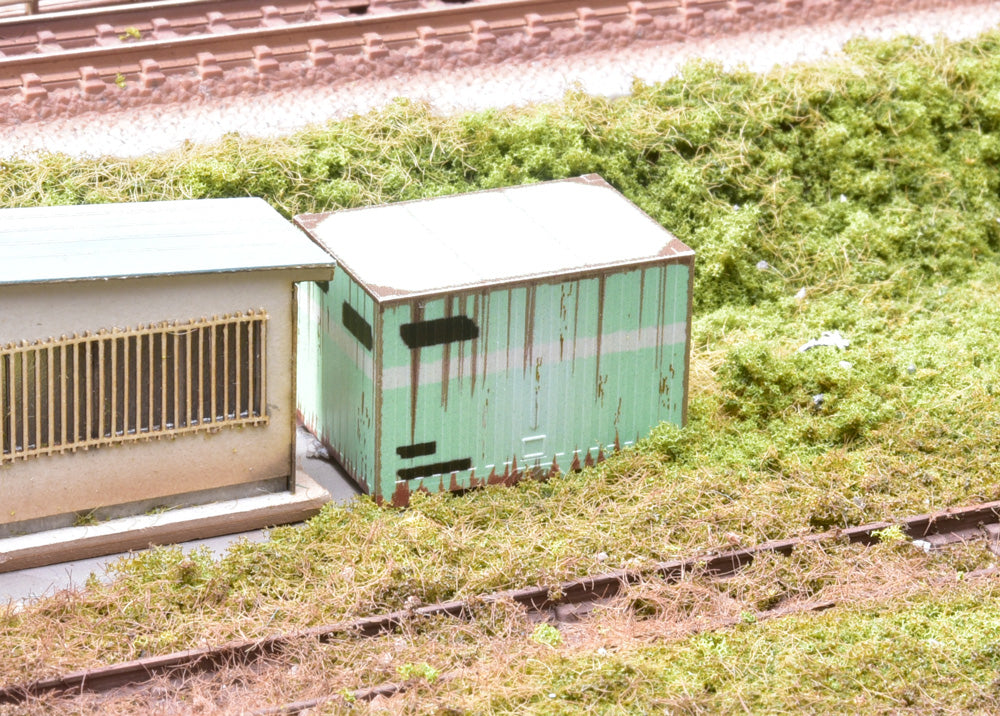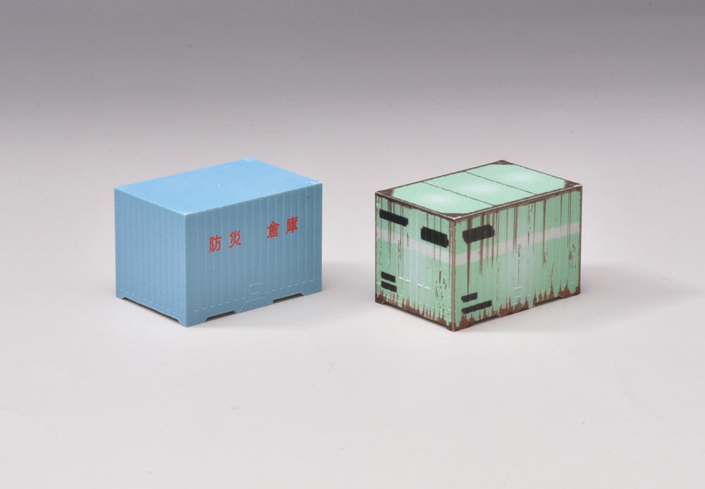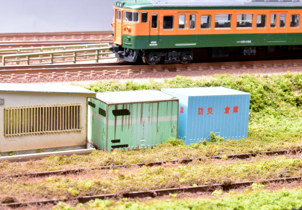 製品は国鉄C20形タイプの廃コンテナと防災倉庫に転用されたコンテナの2個セットで、特にC20形タイプは色褪せやサビを精細な印刷で忠実に再現しています!鉄道施設や自治体敷地内の片隅に配置してお楽しみください! _
